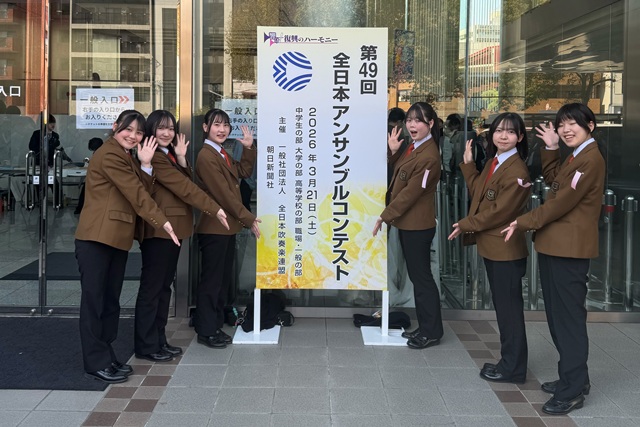 倉敷市芸文館で開催された岡山県アンサンブルコンテスト。今年から1チームのみのエントリーとなり、学芸館からは木管六重奏(H.トマジ作曲「春」)が出場しました。