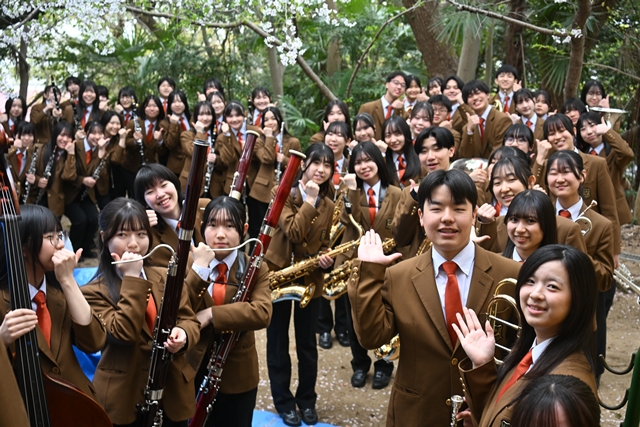桜舞う中、令和8年度の入学式が挙行されました。吹奏楽部は式後の行事で歓迎演奏をさせていただきました。