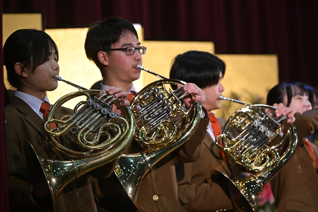 桜舞う中、令和8年度の入学式が挙行されました。吹奏楽部は式後の行事で歓迎演奏をさせていただきました。